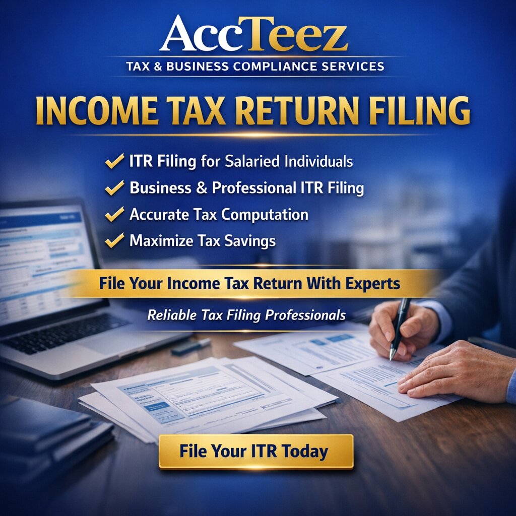 Connect with AccTeez for seamless Income Tax Return filings and expert assistance in navigating related compliances. Your trusted partner in tax matters.